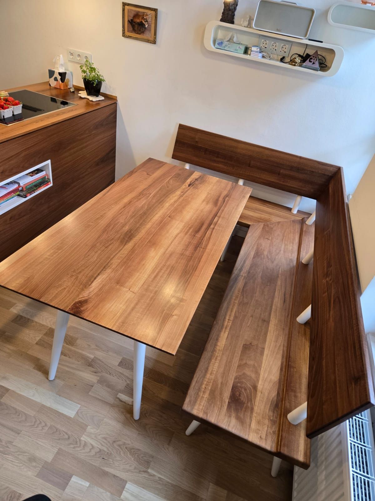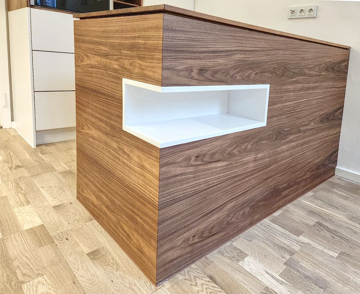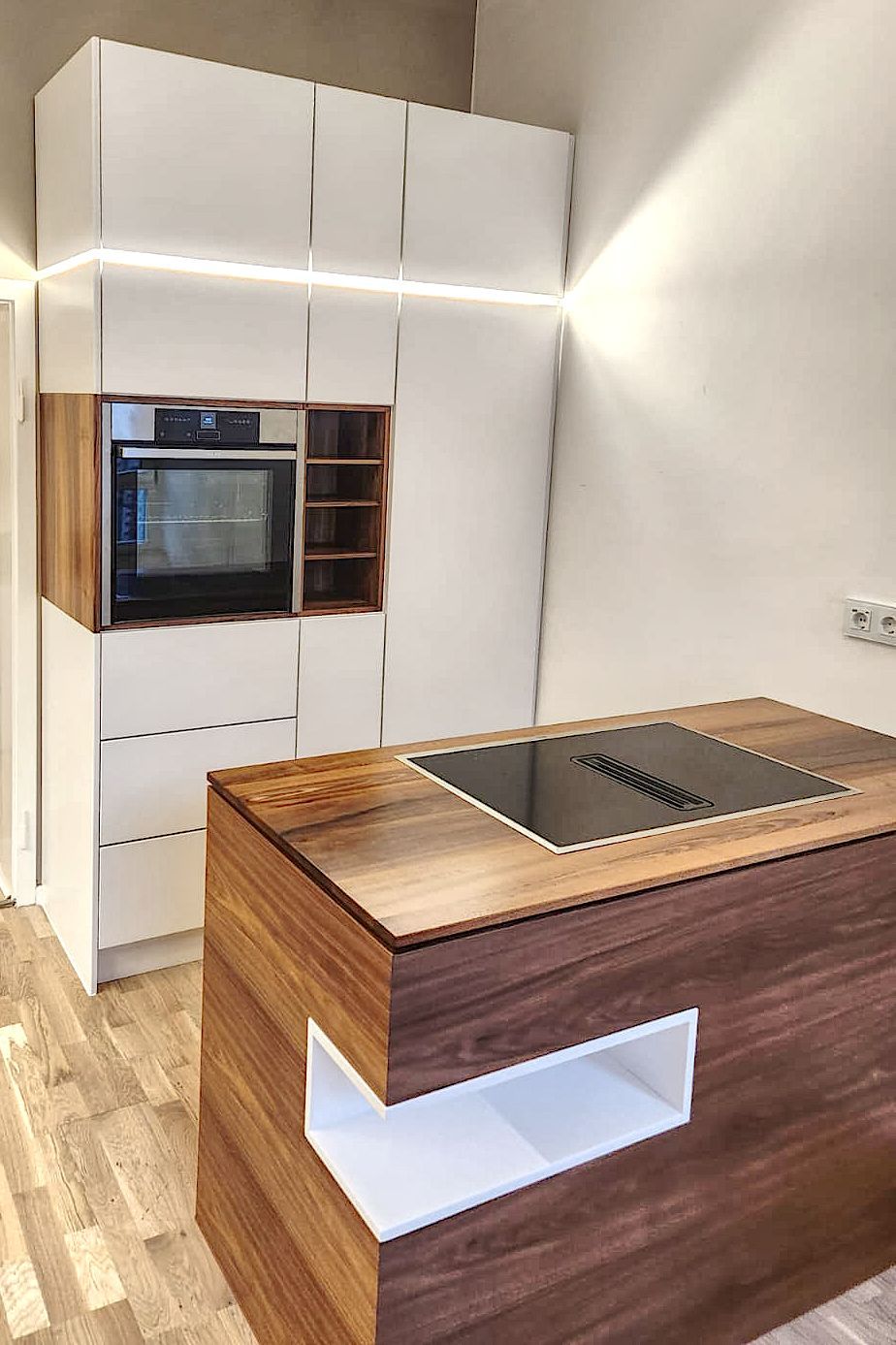 Dunkles Walnussholz trifft auf weiße Lackoberfläche...