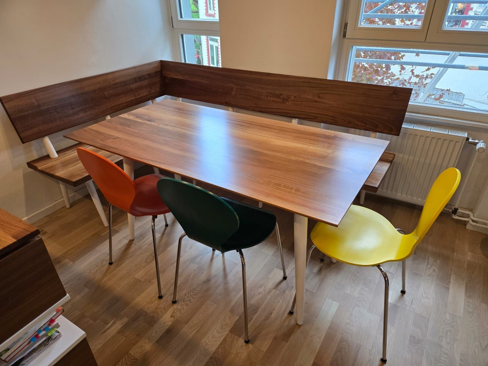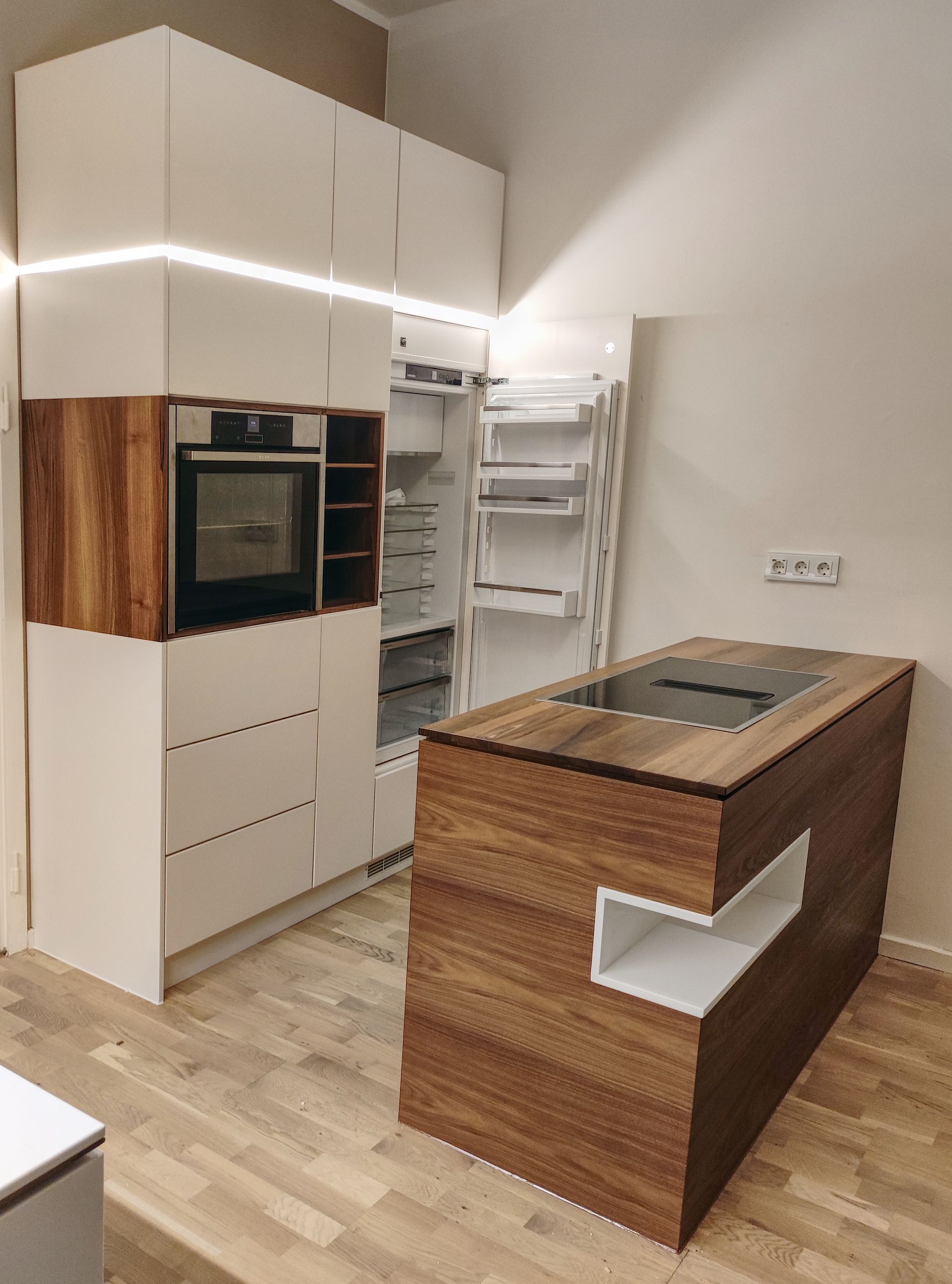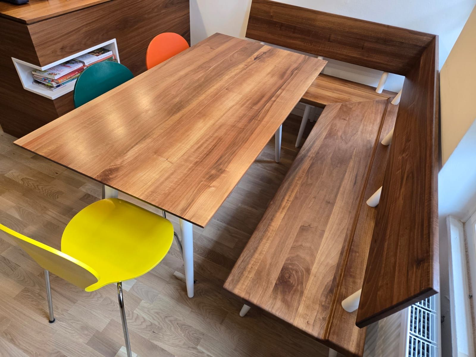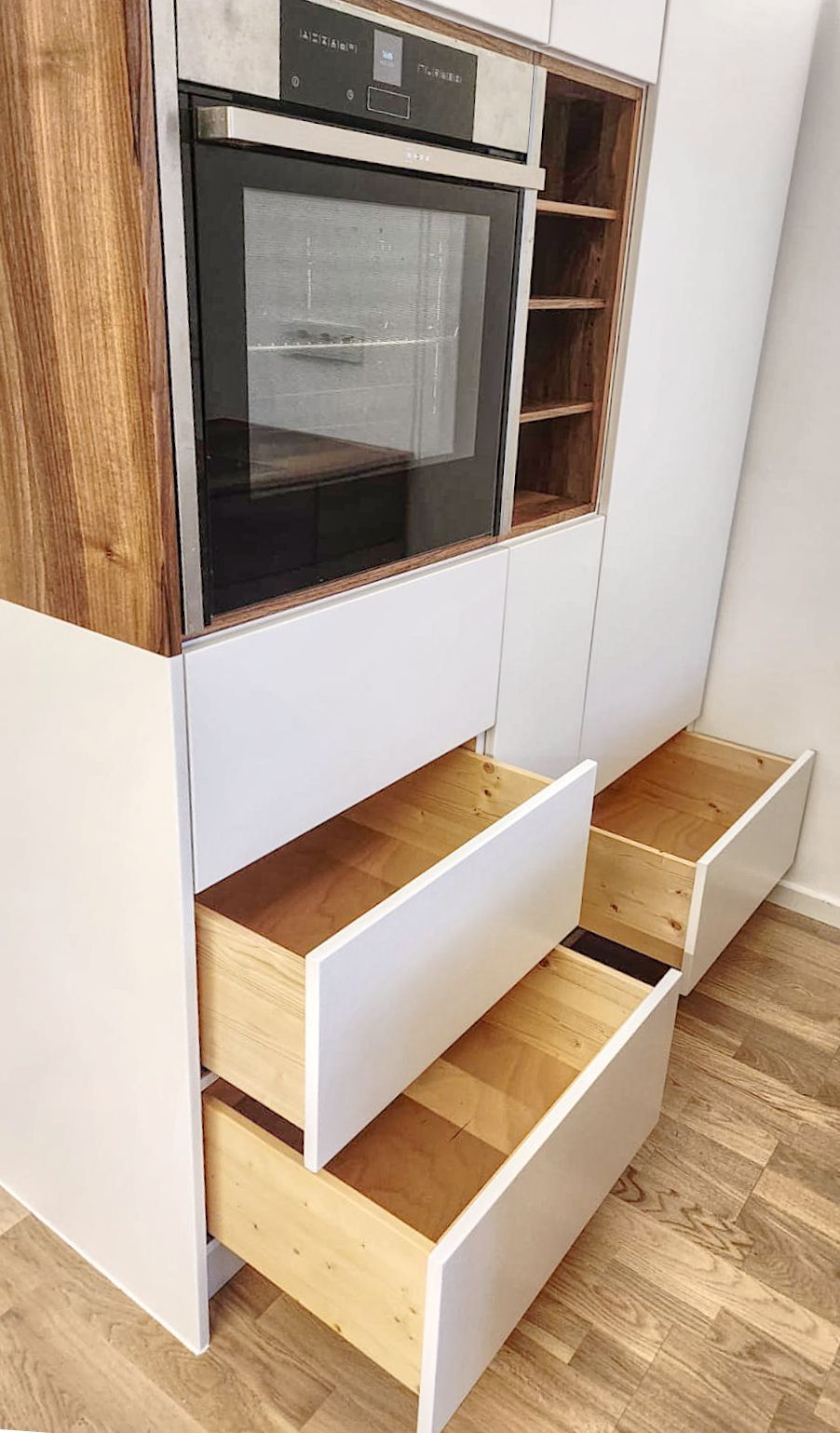 Dunkles Walnussholz trifft auf weiße Lackoberfläche...