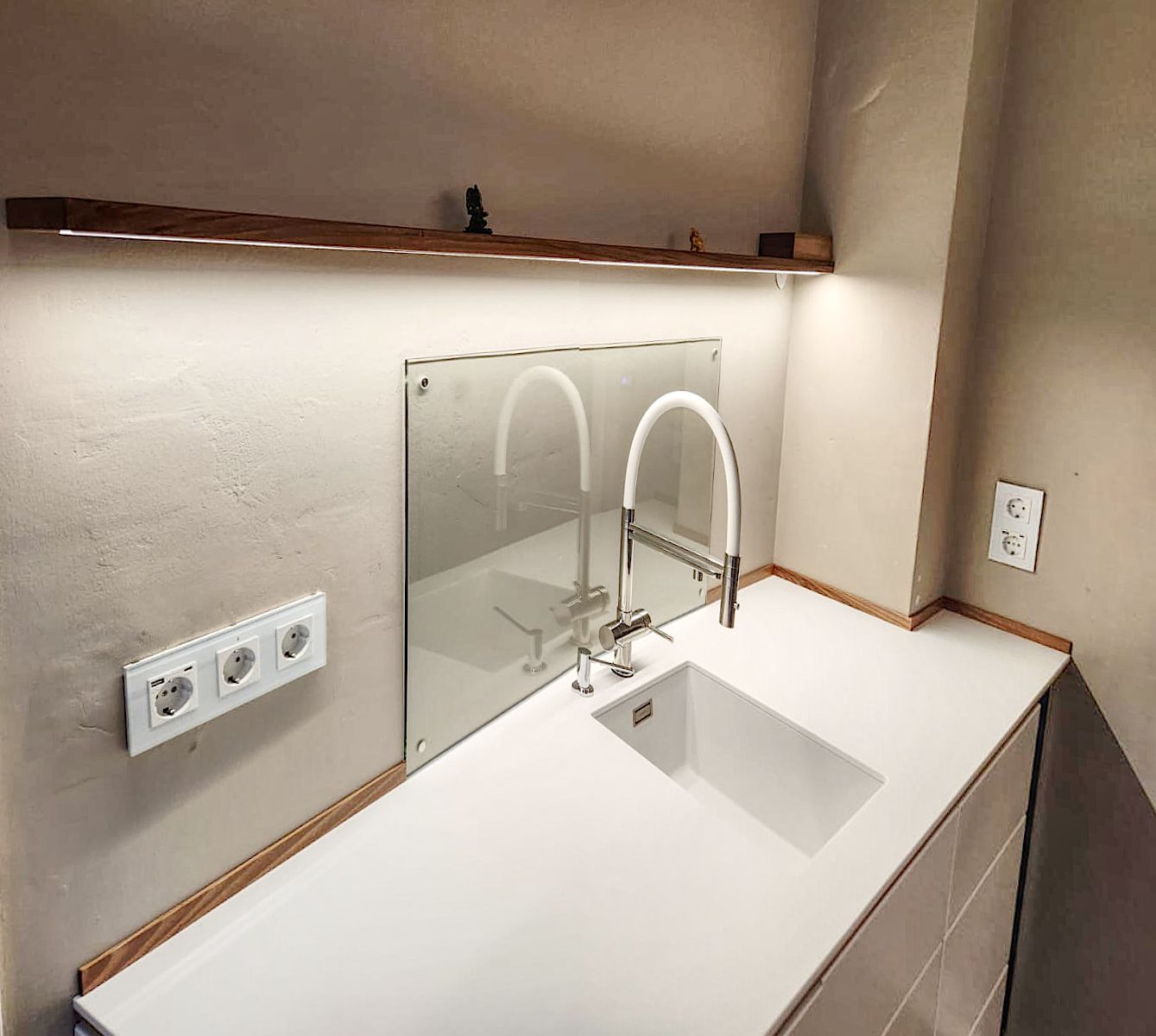 Auch die Lösungen für Lichttechnik sind attraktiv, z.B. als dezentes LED-Band, unsichtbarer Beleuchtung der Arbeitsflächen, als Spots oder auch für die Ausleuchtung im Schrank.