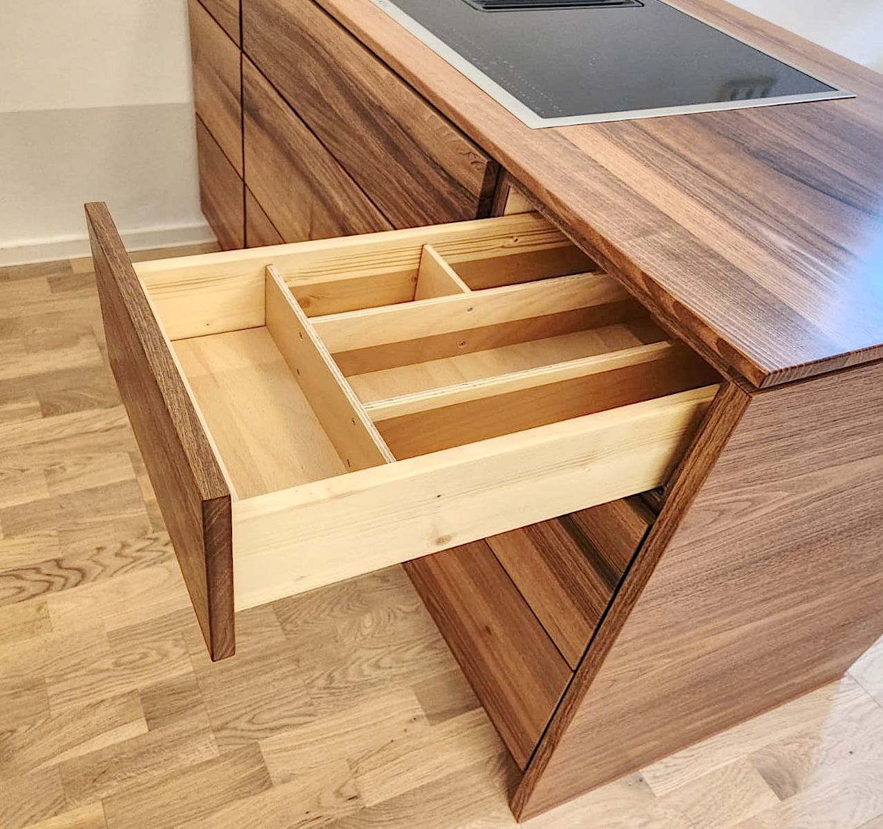 Unsere Küchen sind bewusst anders geplant und gebaut wie herkömmliche Einbauküchen, die sehr vom Modediktat geprägt sind. Dadurch sind alle Teile der Küche veränderbar.