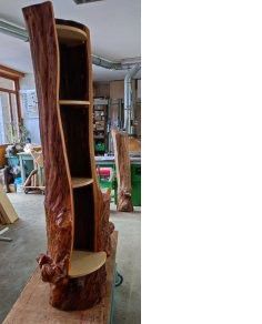 - mit Glasabdeckung und Regal-Element aus einem hohlen Kirschbaum