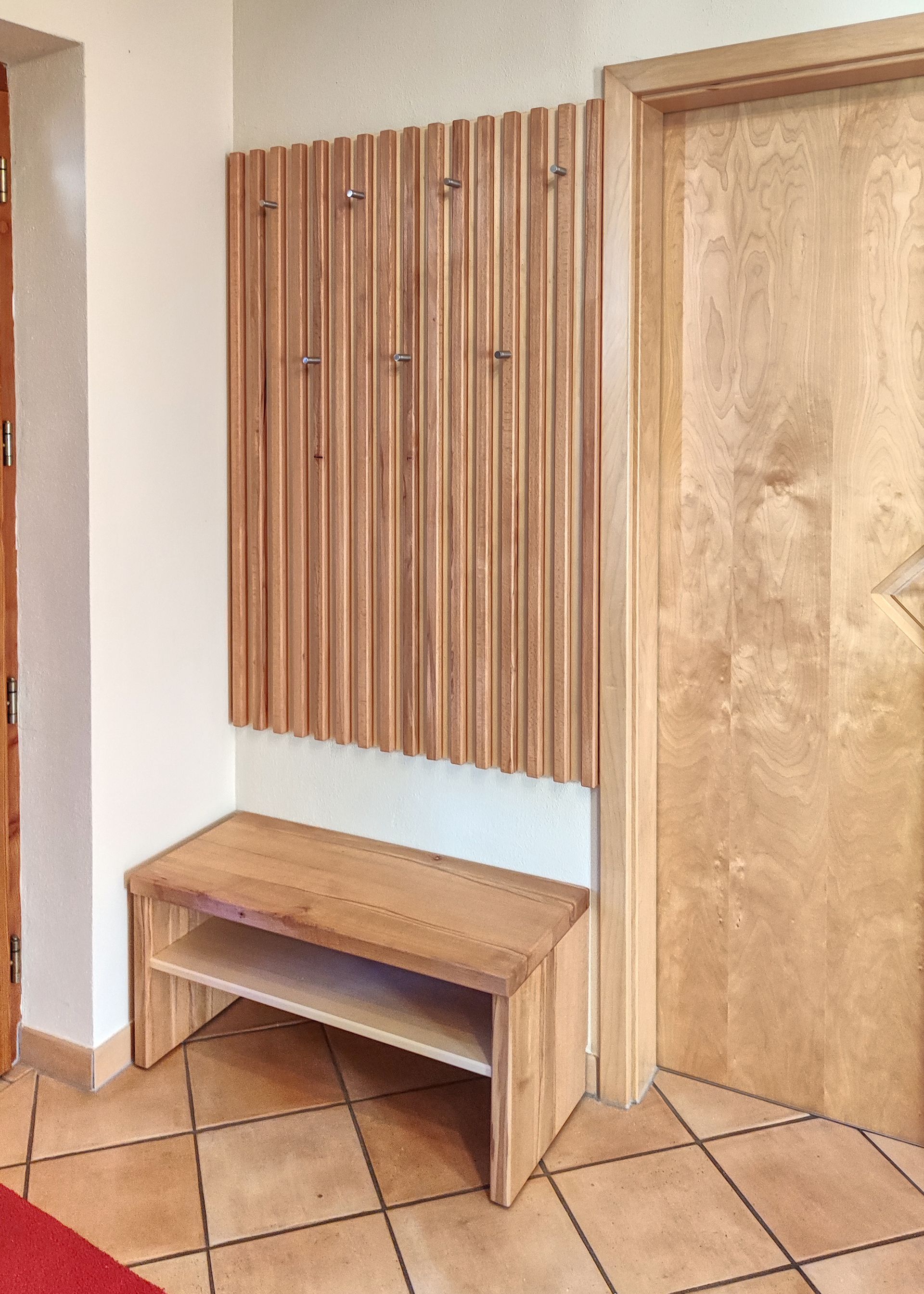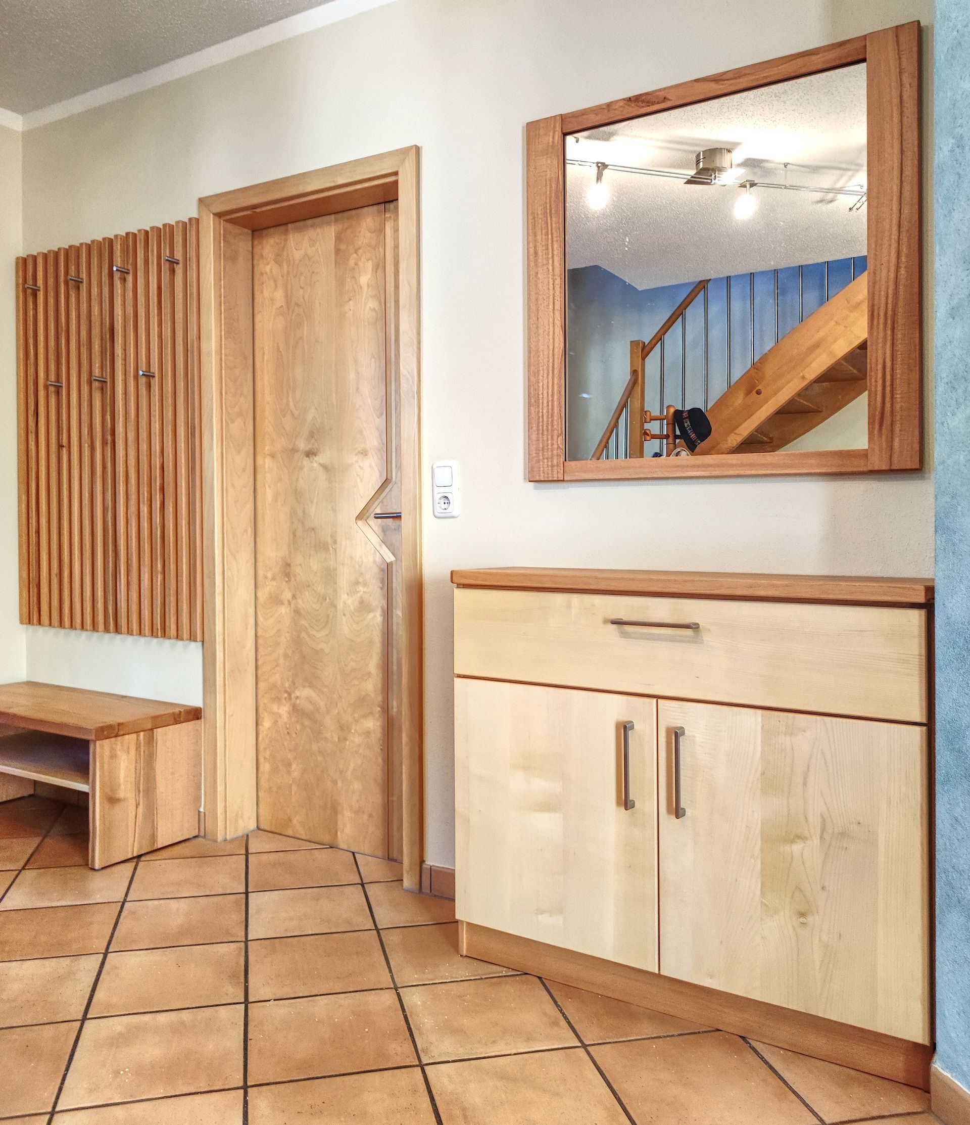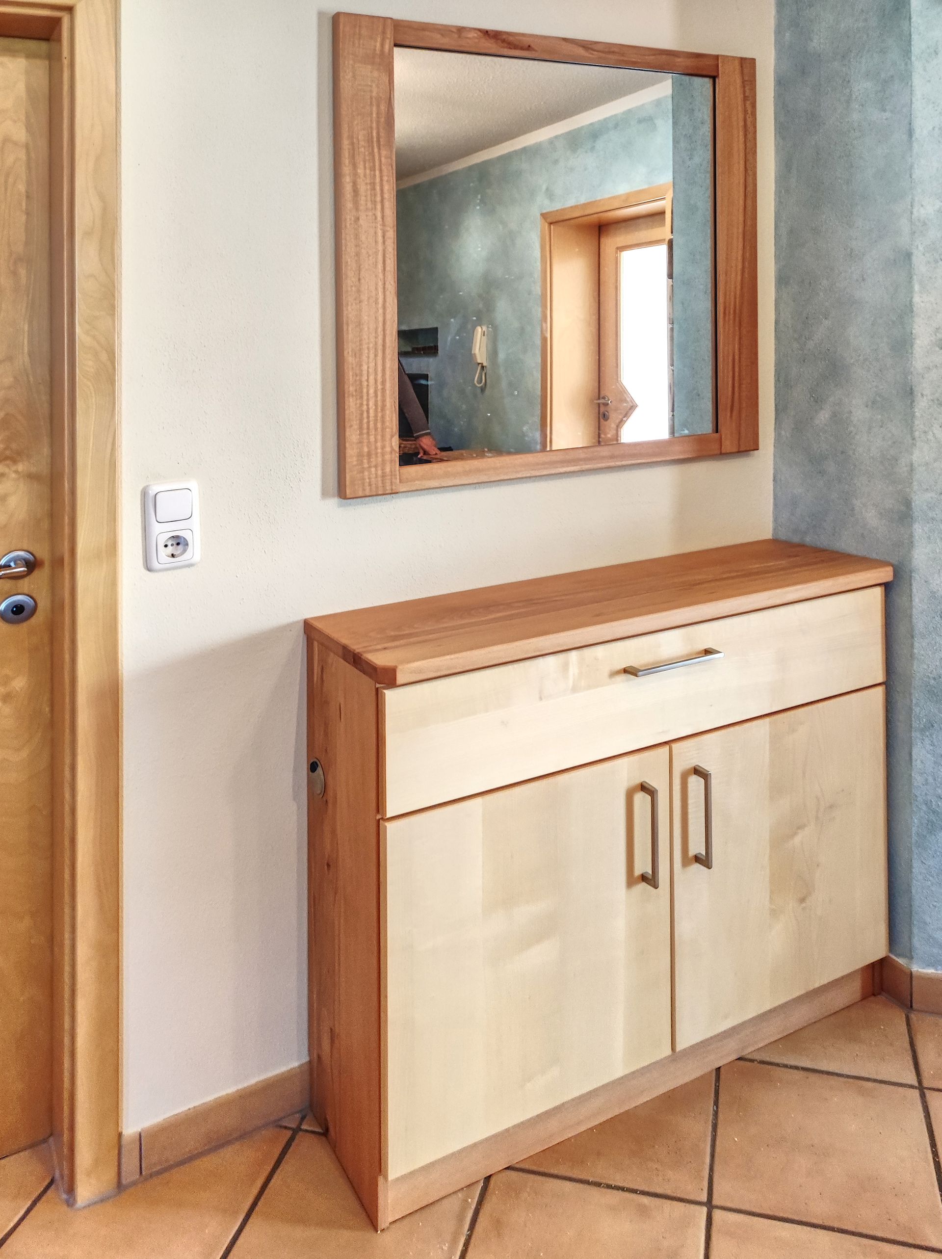 Ensemble für einen Flur mit Spiegel aus Buche und Ahorn in Vollholz