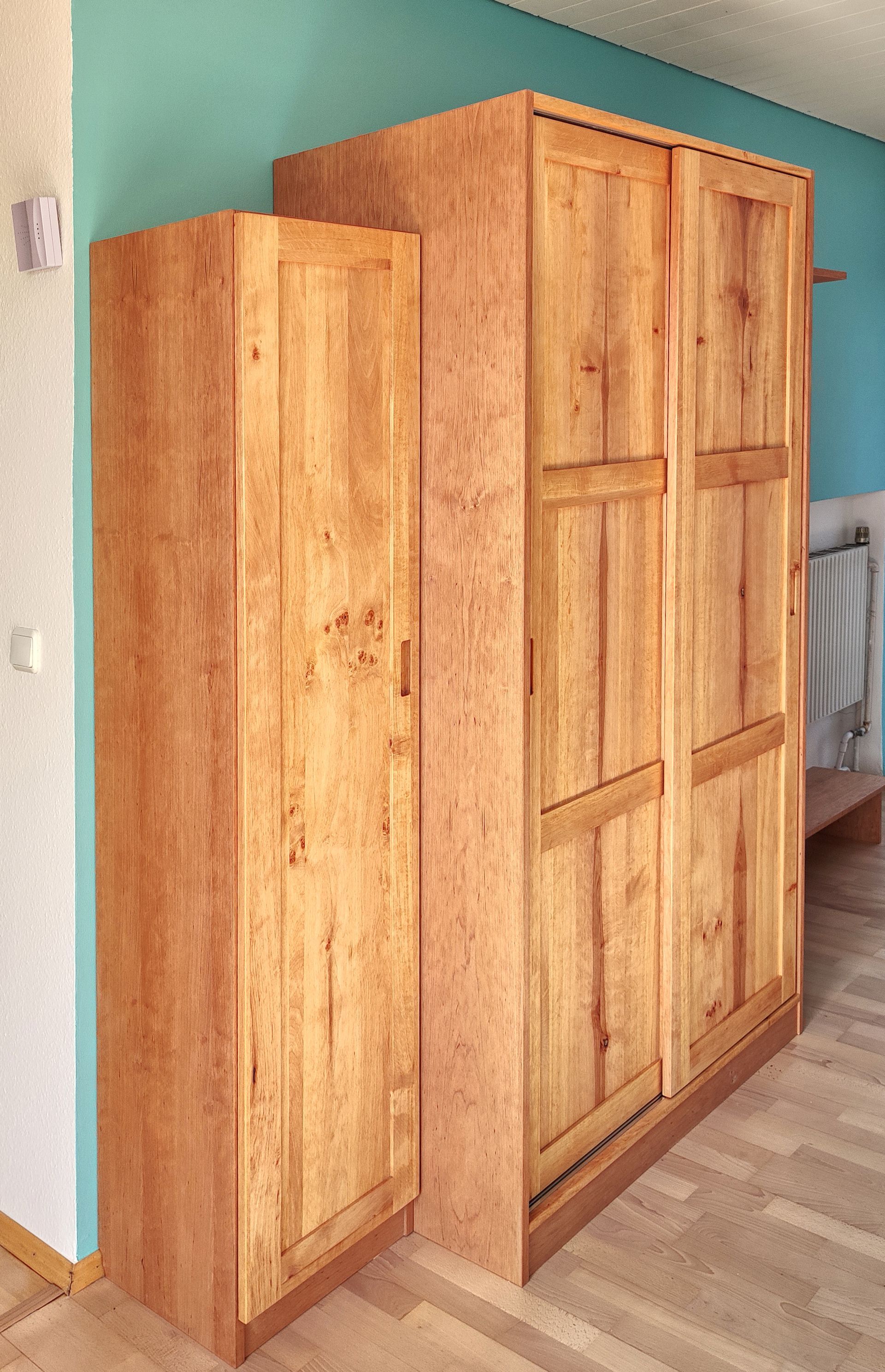 - Schrank und schmaler Schuhschrank Vollholz, Korpus jeweils TPL furniert